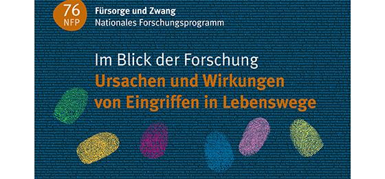 Unter dem Titel "Im Blick der Forschung – Ursachen und Wirkungen von Eingriffen in Lebenswege" gibt das NFP 76 Einblick in seine Ziele, die Forschungsmodule und Projektbeschreibungen auf einem grossformatigen Poster.